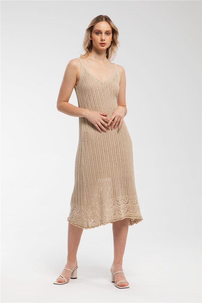 Ajurlu Etek Ucu Ponponlu Triko Elbise A91128-S