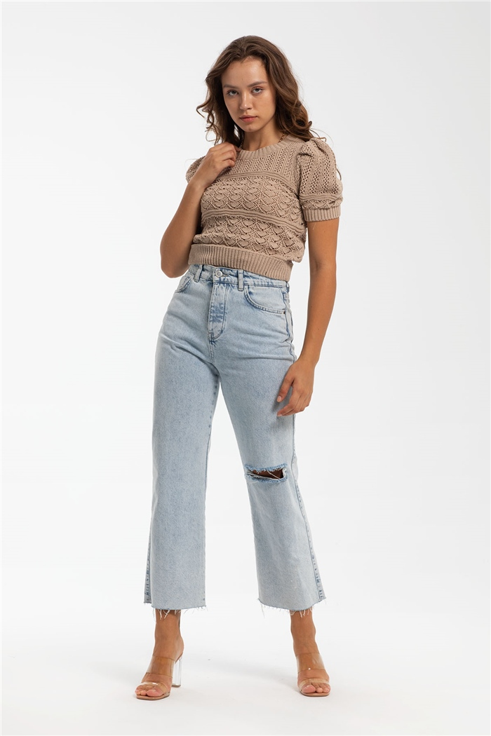 Avrile Kadın Ajurlu Kısa Kollu Tirko Kazak BEJ A91786-S (A91786-S)
