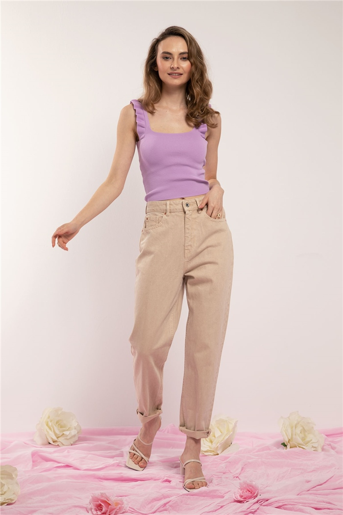Avrile Askıları Fırfırlı Kare Yaka Triko Bluz  LİLA  A91090-S