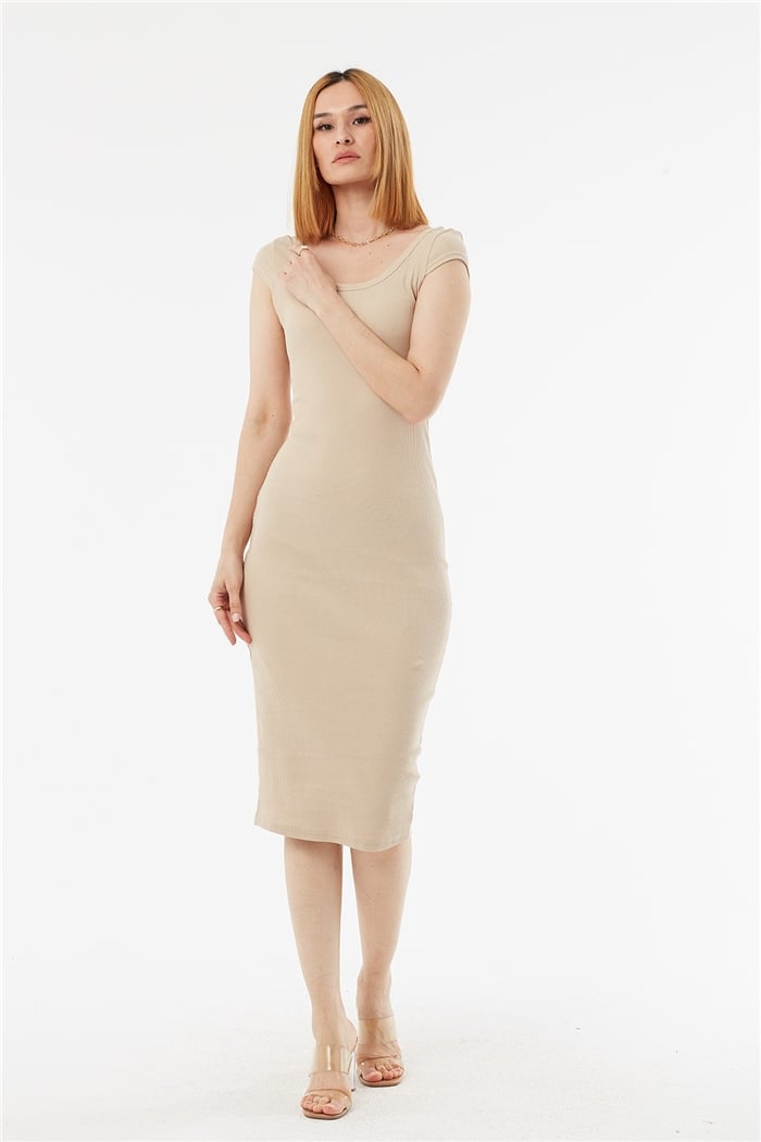 Avrile Kadın Ay Kollu Kaşkore Elbise BEJ A22-10583 (A22-10583)