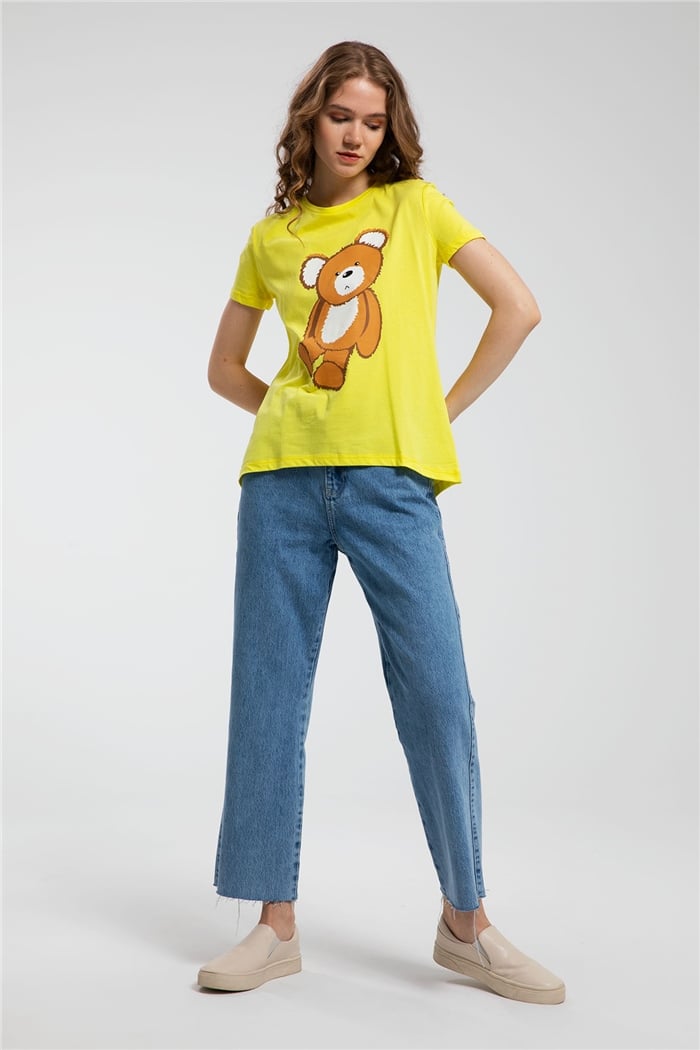 Avrile Kadın Ayıcık Baskılı T-Shirt SARI A21-10433 (A21-10433)