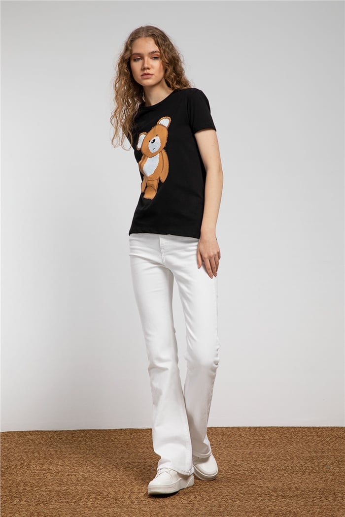 Avrile Kadın Ayıcık Baskılı T-Shirt SİYAH A21-10433 (A21-10433)