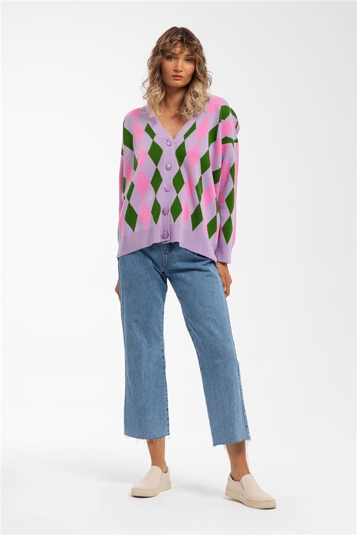 Avrile Baklava Desenli Triko Hırka  LİLA-PEMBE  A91824-S