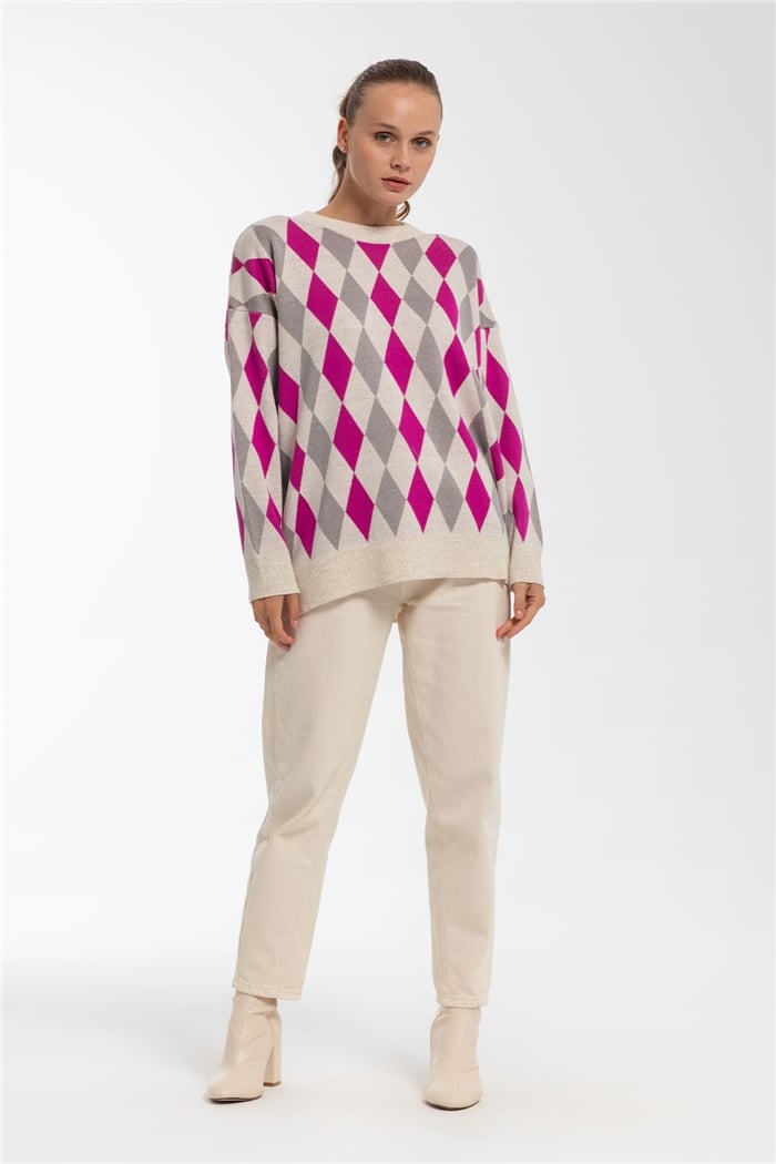 Avrile Baklava Desenli Triko Kazak  TAŞ-GRİ  A91867-S