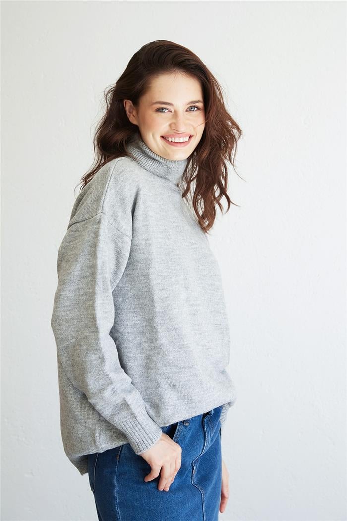 Avrile Kadın Balıkçı Yaka Salaş Triko Kazak GRİ A91900-S (A91900-S)