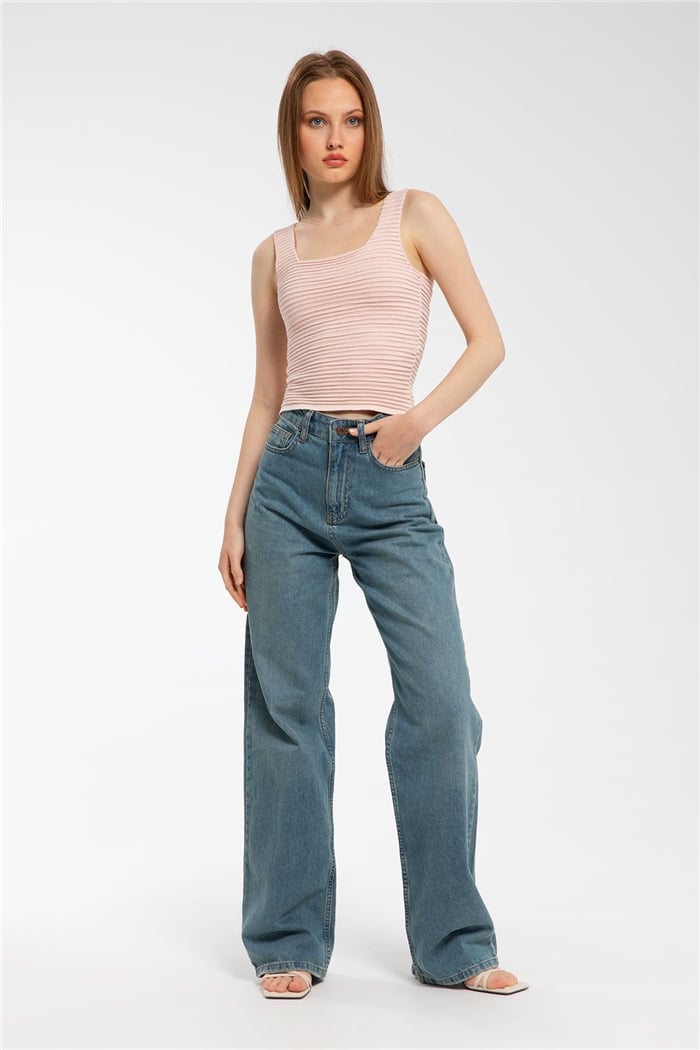 Avrile Kadın Biriktirme Örgülü Triko Atlet PUDRA A91663-S (A91663-S)
