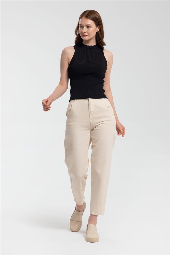 Avrile Kadın Bisiklet Yaka Fitilli Triko Atlet SİYAH A91665-S (A91665-S)