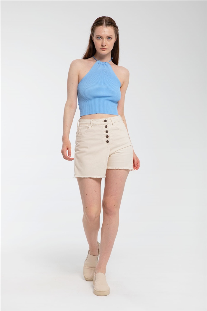 Avrile Kadın Boyundan Bağlamalı Triko Atlet BEBE MAVİ A91714-S (A91714-S)