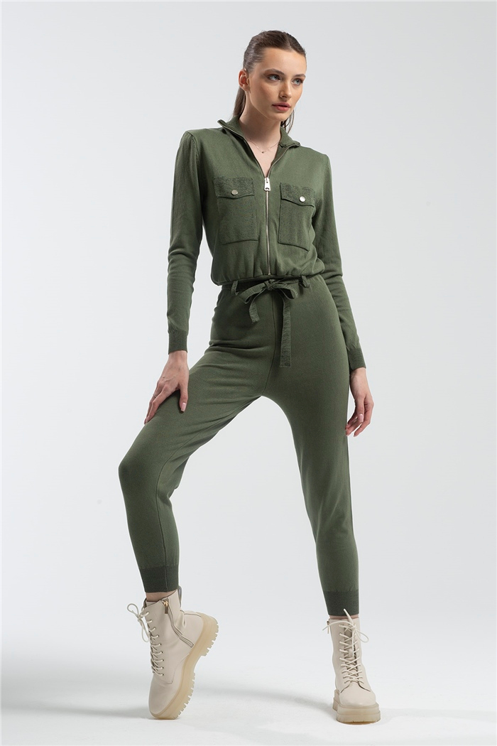 Avrile Kadın Cepli Fermuarlı Triko Tulum HAKİ A91608-S (A91608-S)