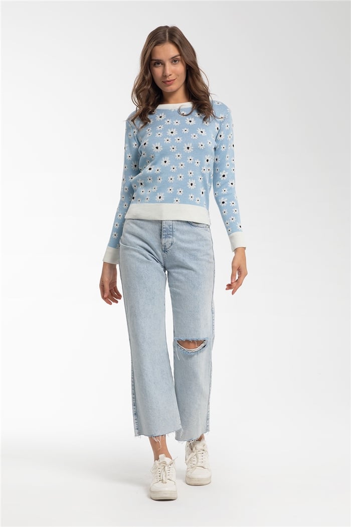 Avrile Çiçek Desenli Triko Kazak  EKRU-B MAVİ  A91877-S