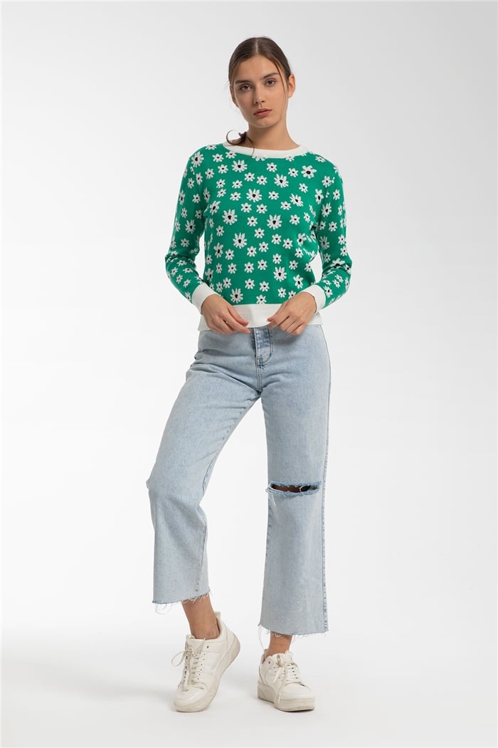 Avrile Çiçek Desenli Triko Kazak  EKRU-BENET  A91877-S