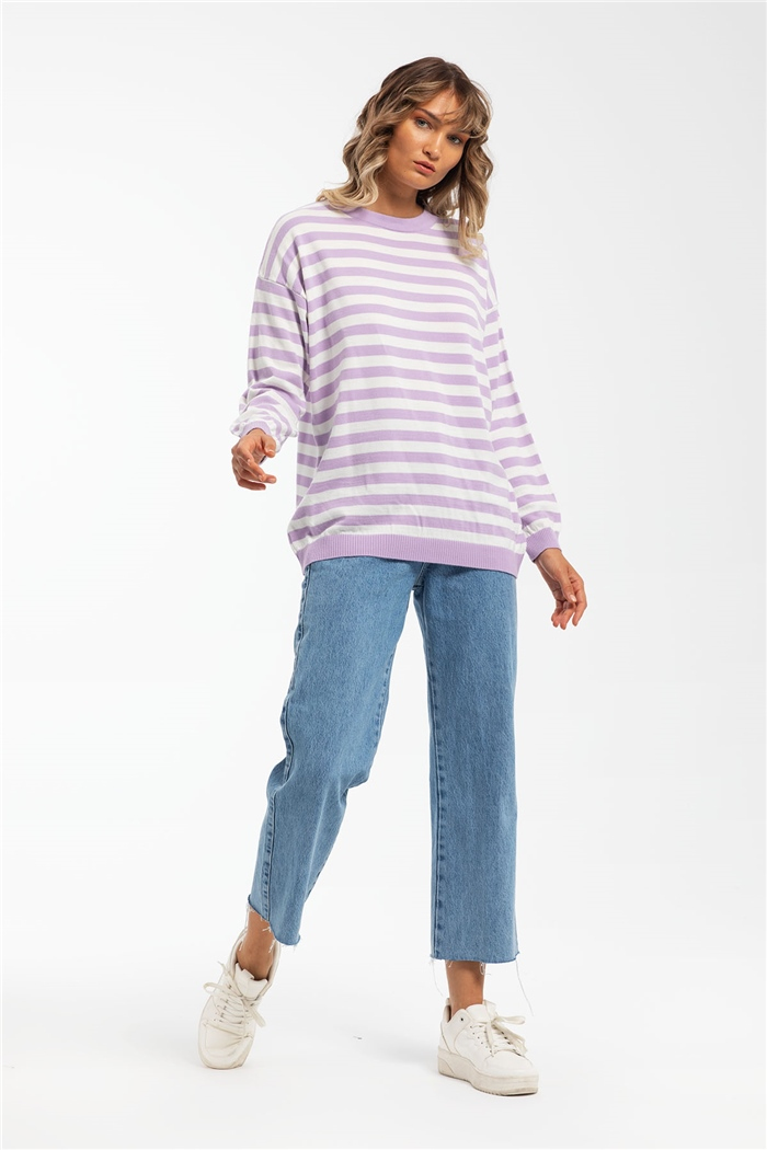 Avrile Çizgili Salaş Triko Kazak  LİLA  A91823-S
