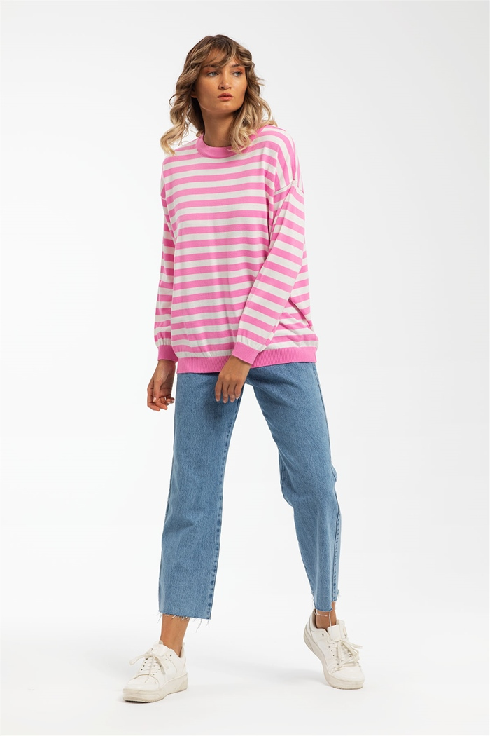 Avrile Kadın Çizgili Salaş Triko Kazak PEMBE A91823-S (A91823-S)