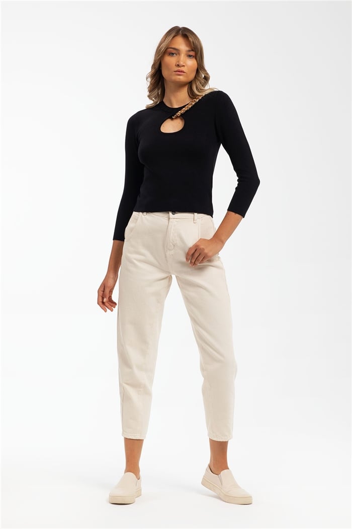 Avrile Kadın Damlalı Zincirli Triko Kazak SİYAH A91821-S (A91821-S)