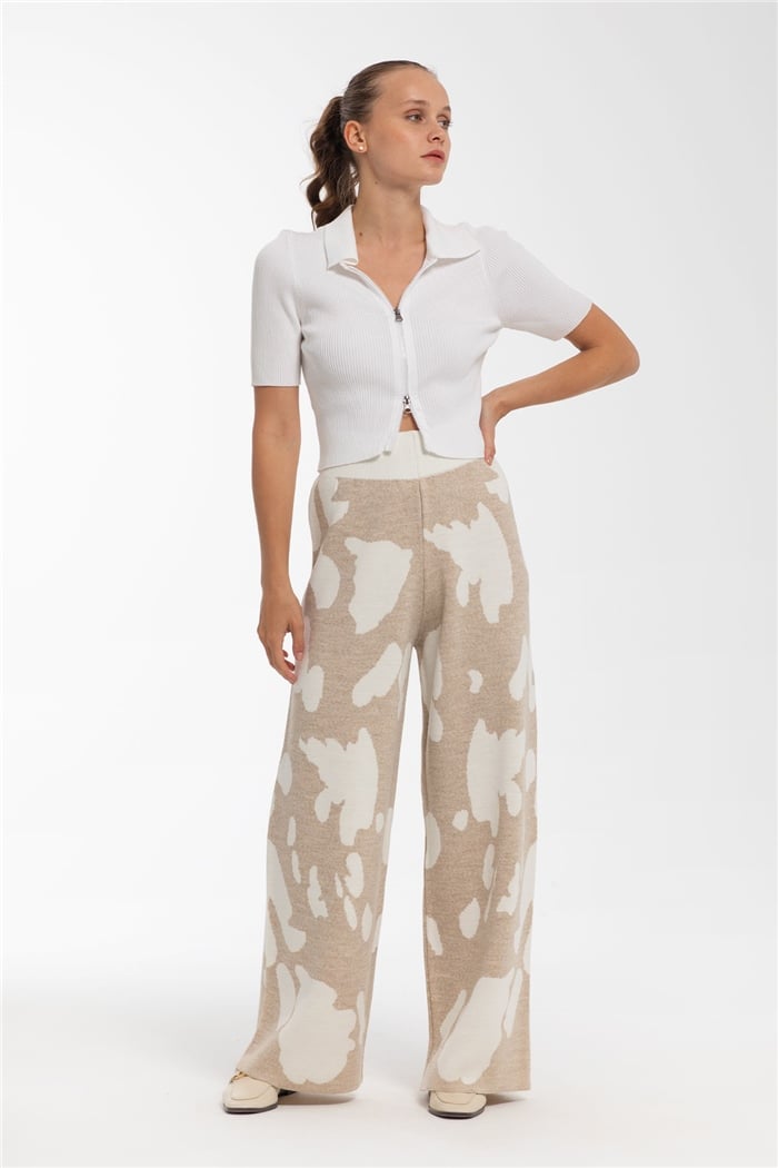 Avrile Dana Desenli Triko Pantolon  BEJ-EKRU  A91862-S