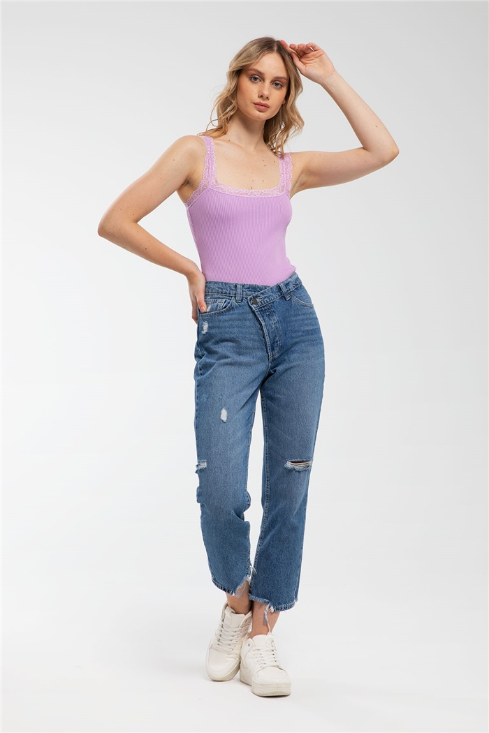 Avrile Kadın Dantelli Triko Zıbın LİLA A91793-S (A91793-S)