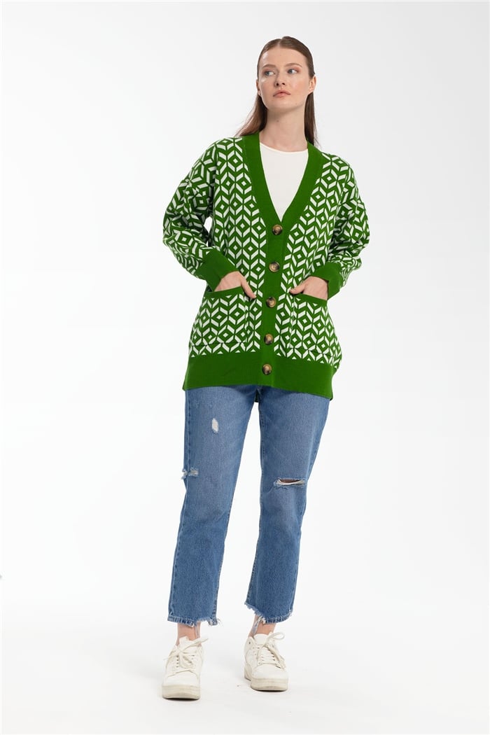 Avrile Kadın Desenli Salaş Triko Hırka YEŞİL A91814-S (A91814-S)