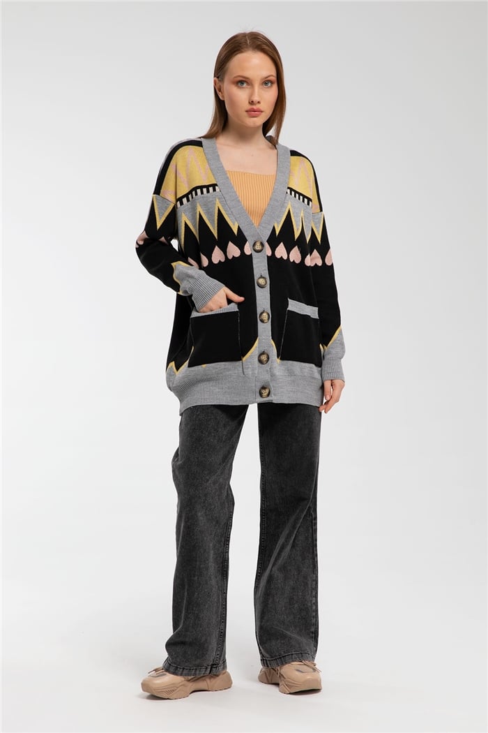 Avrile Kadın Desenli Triko Hırka GRİ A91722-S (A91722-S)