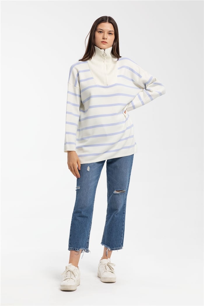 Avrile Kadın Dik Yaka Çizgili Triko Kazak MAVİ A91829-S (A91829-S)