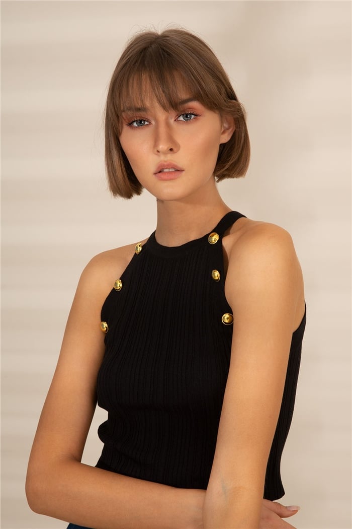 Avrile Düğmeli  Atlet  SİYAH  A90729