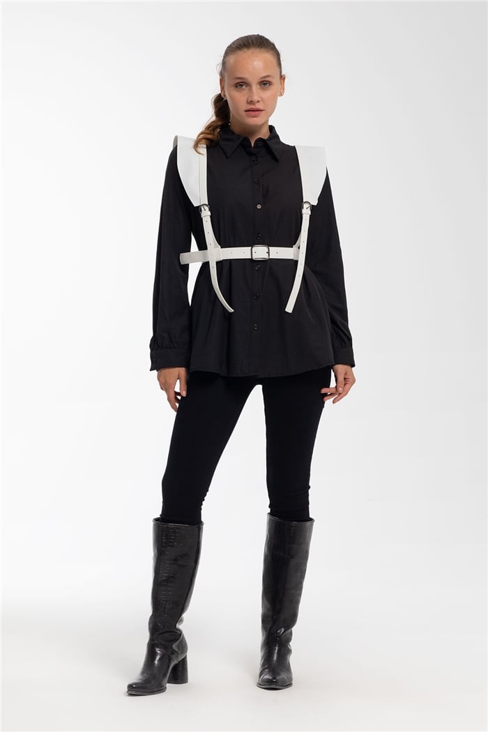 Avrile Düğmeli Kemerli Gömlek  SİYAH  A20-10331