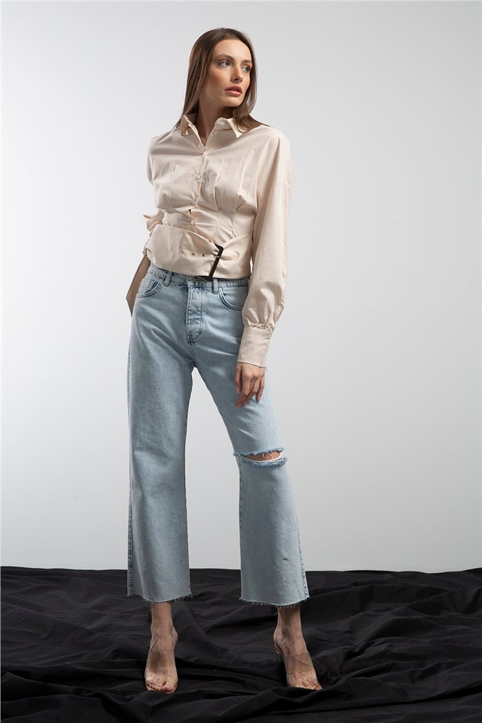 Avrile Düğmeli Önü Tokalı Gömlek  BEJ  A21-10347
