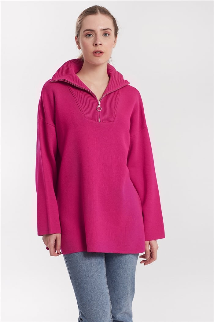 Avrile Kadın Fermuarlı Yırtmaçlı Triko Tunik FUŞYA A91974-S (A91974-S)