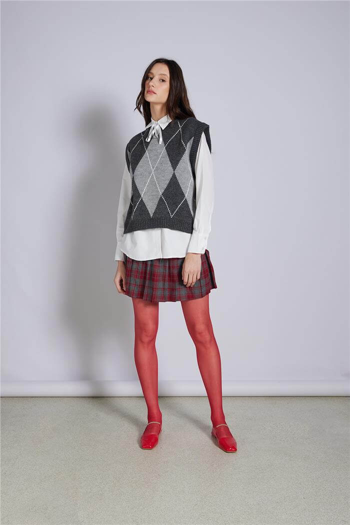 Avrile Gömlekli Baklava Desen Süveter ANTRASİT-GRİ A92609-S (A92609-S)