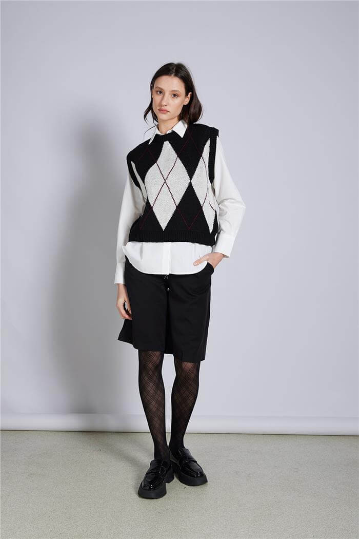 Avrile Gömlekli Baklava Desen Süveter SİYAH-TAŞ A92609-S (A92609-S)