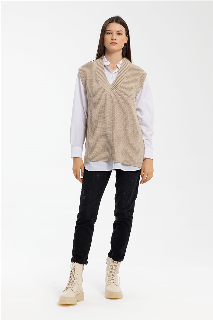 Avrile İçi Gömlekli Triko Süveter  BEJ  A91580-S