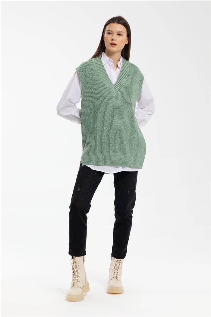 Avrile İçi Gömlekli Triko Süveter  MİNT YEŞİLİ  A91580-S