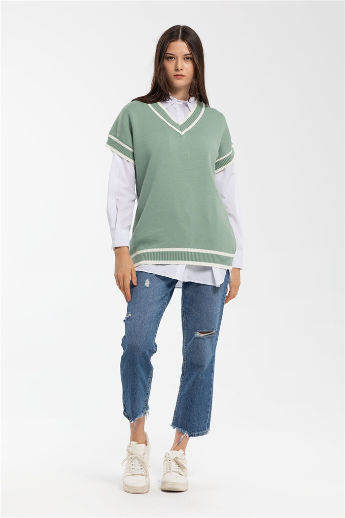Avrile İçi Gömlekli Triko Süveter  MİNT YEŞİLİ  A91583-S