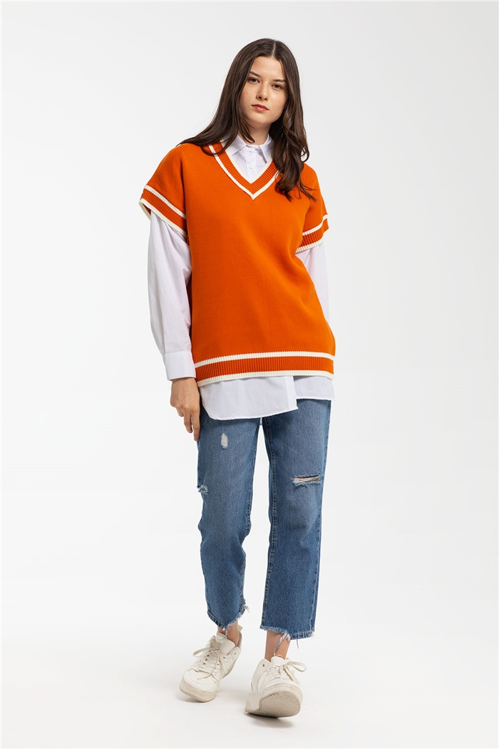 Avrile İçi Gömlekli Triko Süveter  ORANJ  A91583-S