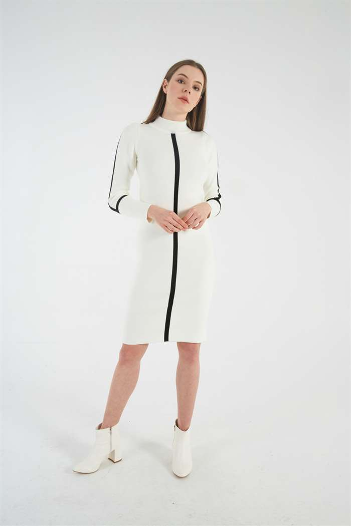 Avrile Kadın Çizgili Uzun Triko Elbise EKRU A90994-S (A90994-S)