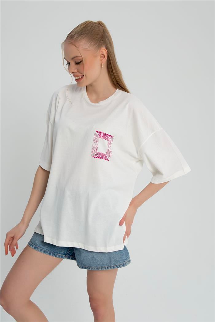 Avrile Kadın Baskılı T-Shirt EKRU A23-10109 (A23-10109)