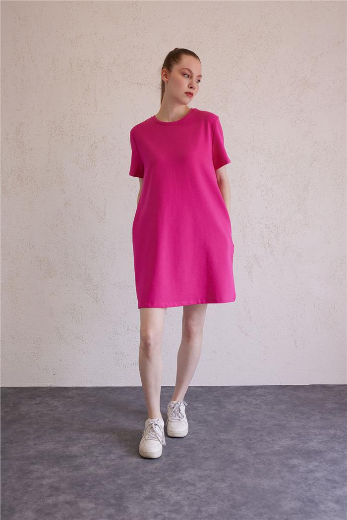Avrile Kadın Bisiklet Yaka Basic Elbise FUŞYA A23-10222 (A23-10222)