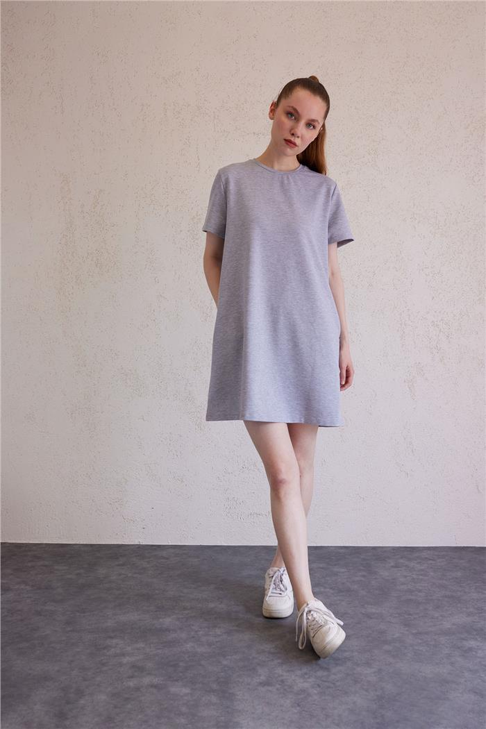 Avrile Kadın Bisiklet Yaka Basic Elbise GRİ A23-10222 (A23-10222)