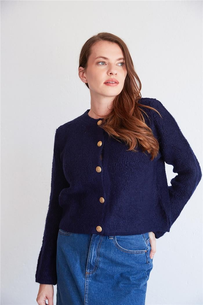 Avrile Kadın Bisiklet Yaka Gold Düğmeli Hırka LACİVERT A92301-S (A92301-S)