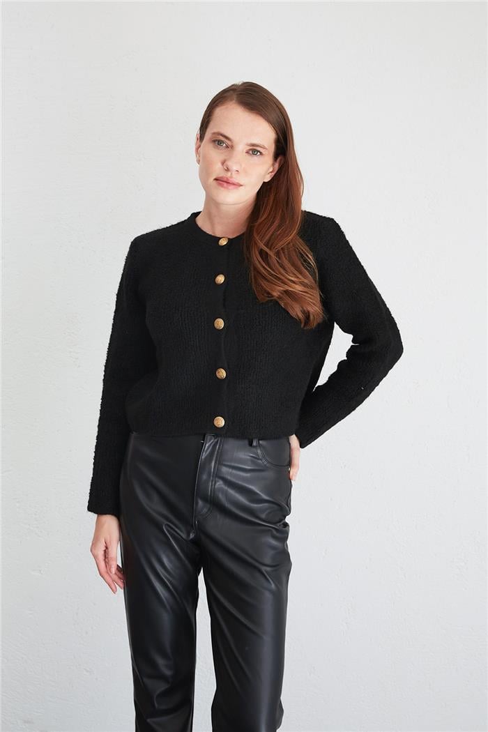 Avrile Kadın Bisiklet Yaka Gold Düğmeli Hırka SİYAH A92301-S (A92301-S)