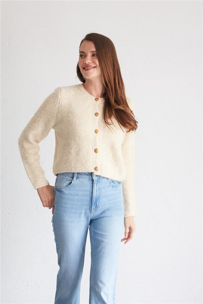 Avrile Kadın Bisiklet Yaka Gold Düğmeli Hırka TAŞ A92301-S (A92301-S)