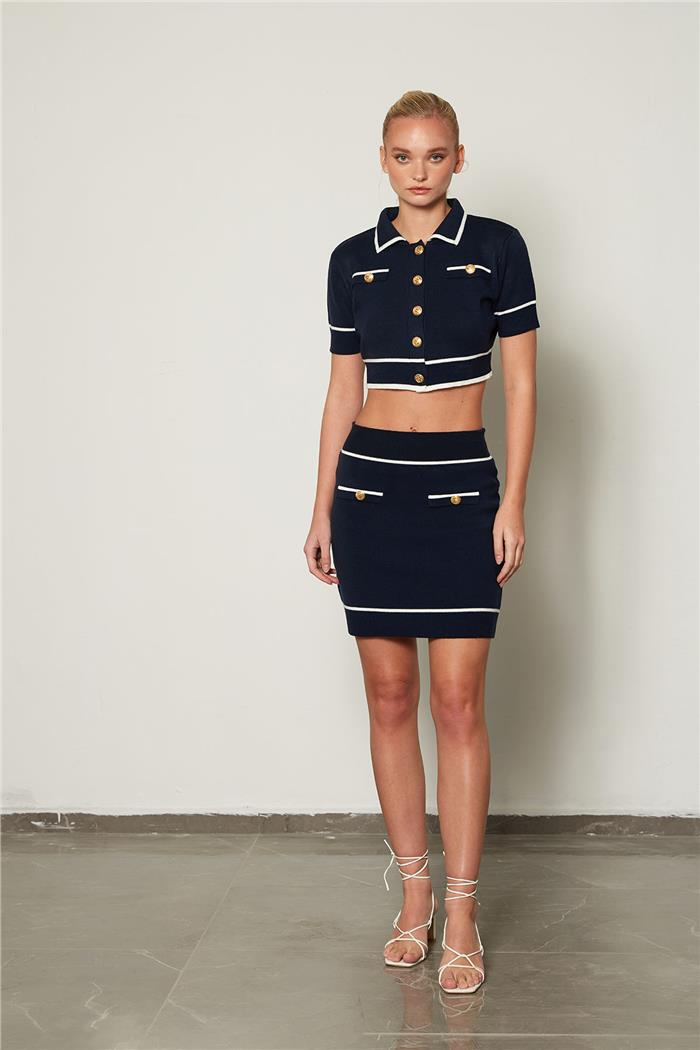 Avrile Kadın CEP DETAYLI DÜĞMELİ TRİKO TAKIM LACİVERT-HAM EKRU A92325-S