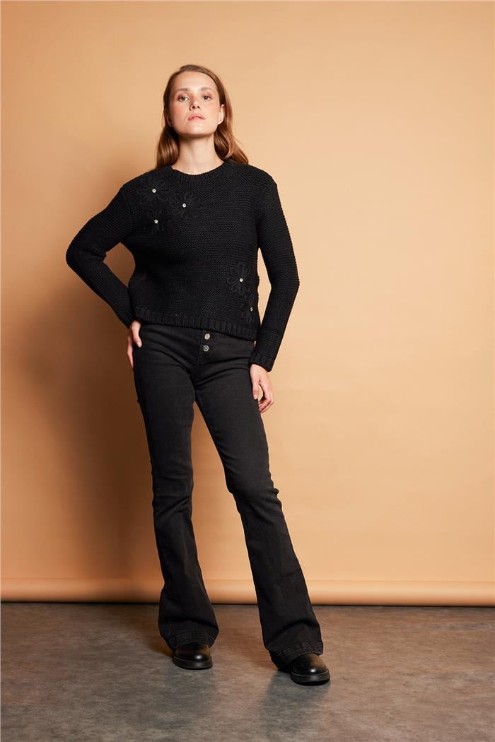 Avrile Kadın Çiçek Detaylı Triko Kazak SİYAH A92561-S (A92561-S)