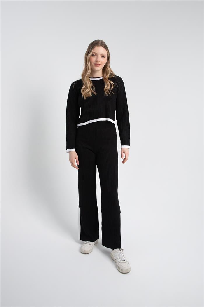 Avrile Kadın ÇİZGİ DETAYLI TRİKO TAKIM SİYAH-BEYAZ A92248-S (A92248-S)
