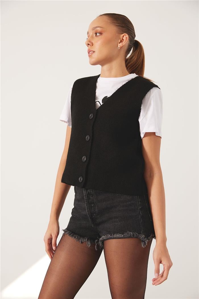 Avrile Kadın Düğmeli Triko Yelek SİYAH A92453-S (A92453-S)