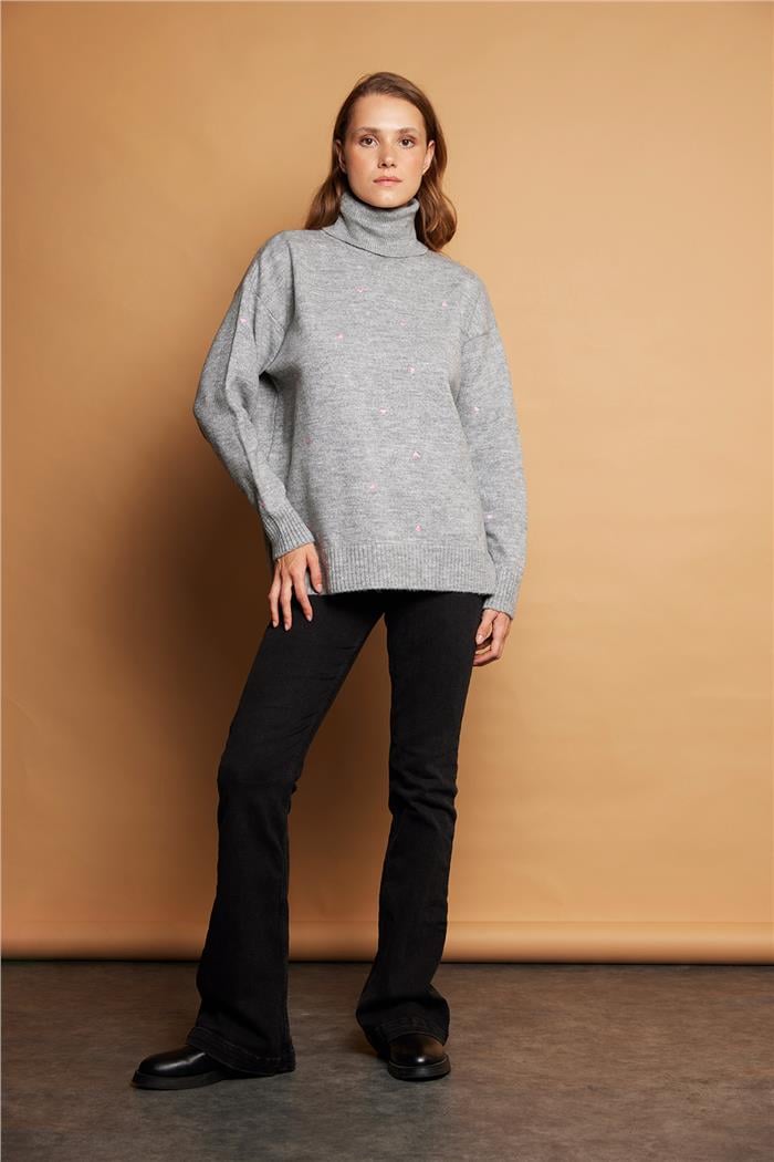 Avrile Kadın Kalp Nakışlı Triko Kazak GRİ A92559-S (A92559-S)
