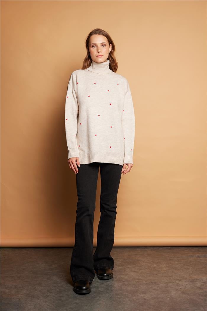 Kalp Nakışlı Triko Kazak A92559-S
