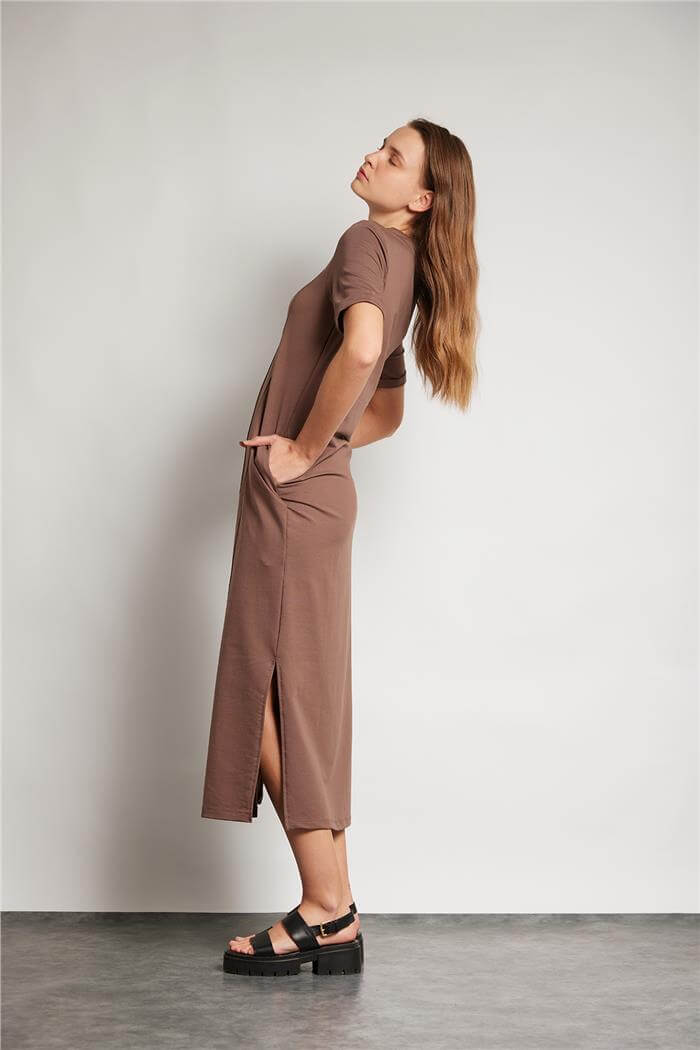 Avrile Kadın KISA KOLLU UZUN ELBİSE KAHVE A24-10278 (A24-10278)