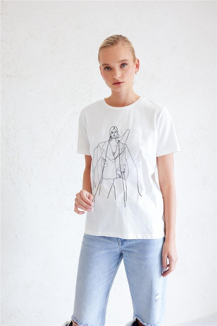 Avrile Kadın Kız Baskılı T-Shirt EKRU A23-10108 (A23-10108)