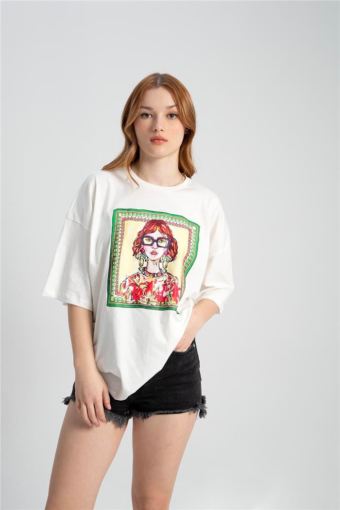 Avrile Kadın Kız Baskılı T-Shirt EKRU A23-10120 (A23-10120)