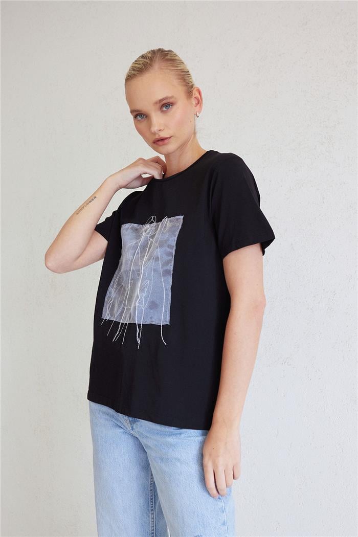 Avrile Kadın Kız Baskılı T-Shirt SİYAH A23-10108 (A23-10108)